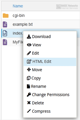 4. Right-click on the file. Then click on Edit or HTML Edit in the Context Menu.