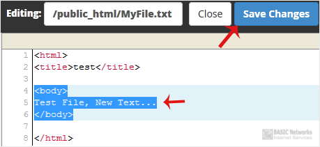 6. Make changes to the file and then click on Save Changes.
