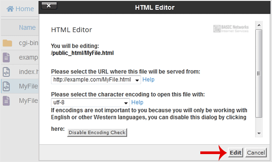 5. In the HTML Editor window, click on Edit.