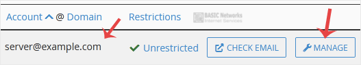 4. If your email address is server@example.com, you should see a Manage option on the right side of your email address. Click on Manage.