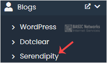 4. On the left side, locate the Blogs category. Click on it and then on the Serendipity link that appears.