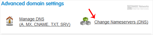 4. Scroll down to the Advanced domain settings and click on Change Nameservers (DNS).