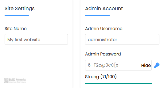 • Admin Username: Your new HTMLy username (for security reasons, do not use the administrator or the admin username).