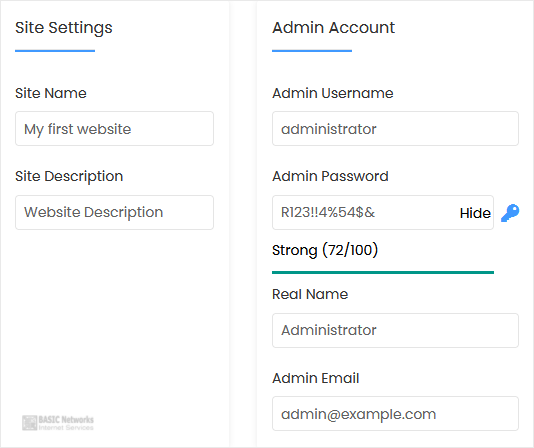 • Admin Password: Use a strong password.