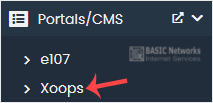 4. On the left side, locate the Portal/CMS category. Click on it and then on the Xoops link that appears.