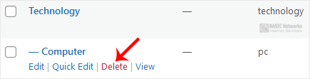 3. Hover your mouse over a category you want to remove and click on Delete. The confirmation option will appear. Confirm with OK.