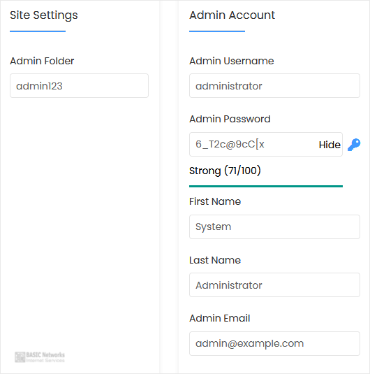 • Admin Password: Use a strong password.