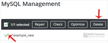 4. Click on Delete. Please do it again to confirm the removal of the database.