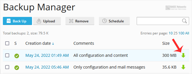 2. From the backup list, click the download icon.